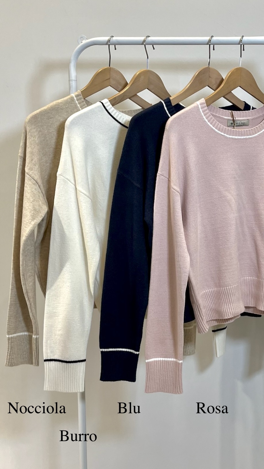 girocollo, con dettaglio.. (foto copertina indossato: sabbia con riga cacao, gli altri hanno la riga in burro o nero)