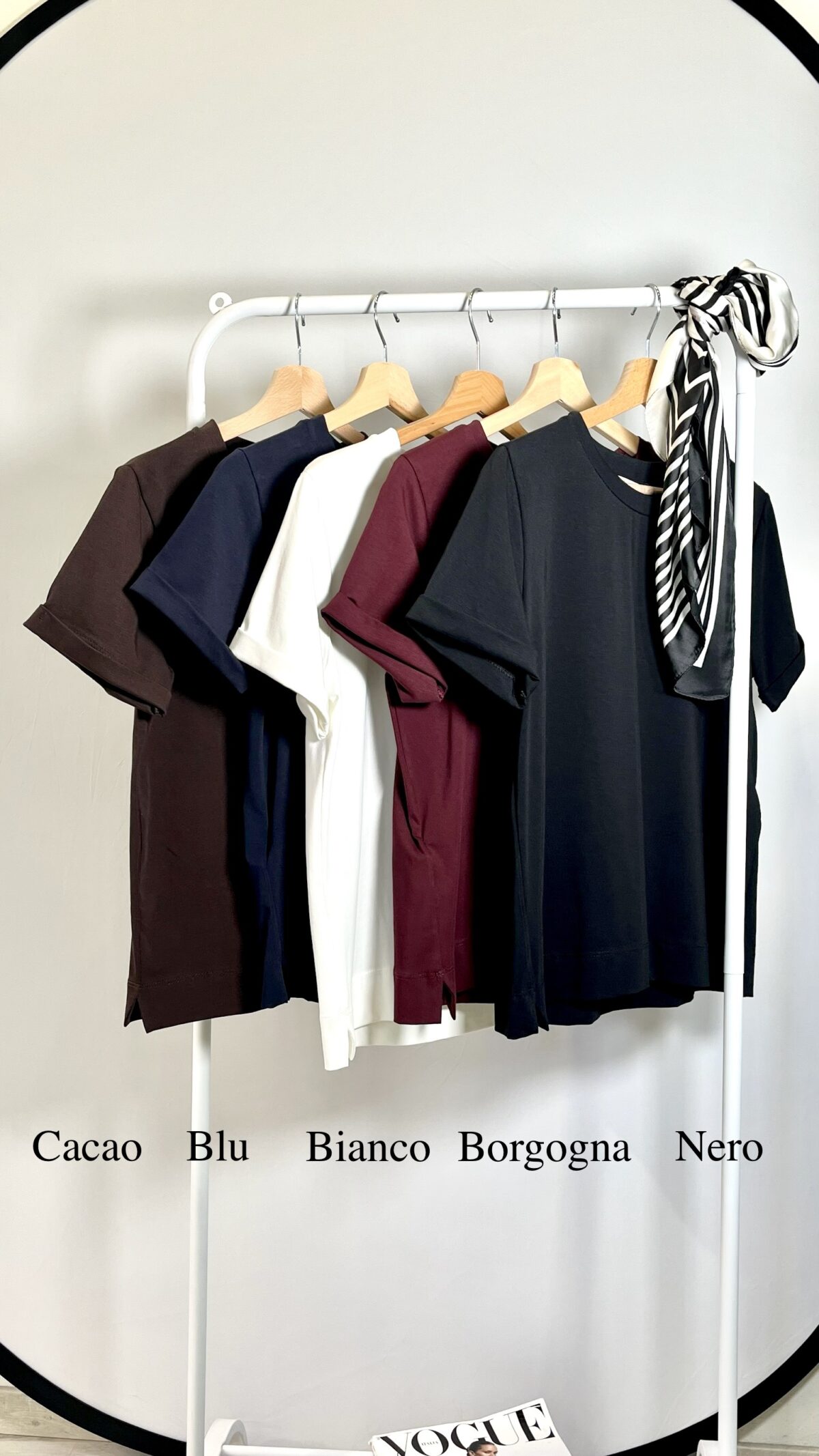 Bianco, Blu, Borgogna, Cacao, Nero